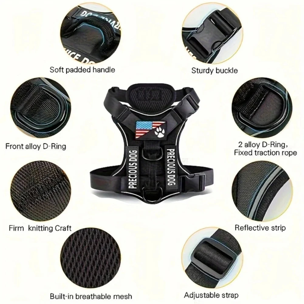 para Service Dog Harness, Reflective Dog Vest Harness with 5 PCS Patches, Adjustable Soft Oxford Pet Harness, Inner Layer Mesh, Easy